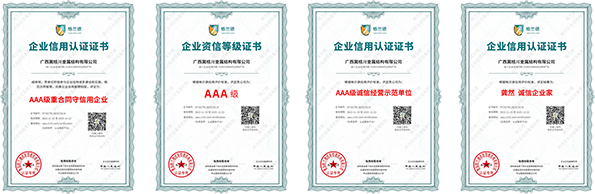 廣西冀桂川金屬結(jié)構(gòu)有限公司始終恪守“誠實(shí)經(jīng)營、質(zhì)量保障、信譽(yù)至上、價格合理、合作共贏”的宗旨,嚴(yán)格按照ISO質(zhì)量體系認(rèn)證標(biāo)準(zhǔn),為客戶提供系統(tǒng)的技術(shù)支持和施工建議,有效的為客戶解決難題,竭誠為客戶提供更優(yōu)質(zhì)滿意的工程。